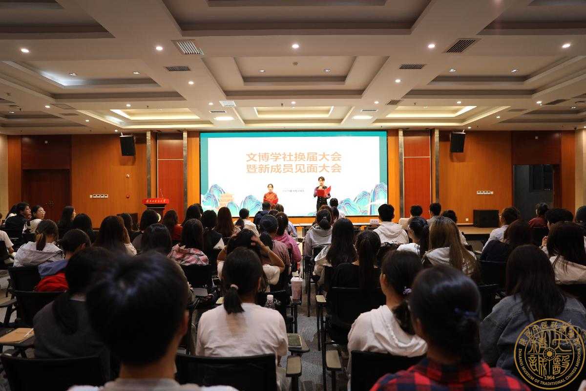 9月24日晚,陕西中医药文博学社换届大会暨新成员见面大会在5515顺利举办,陕西中医药博物馆馆长白吉庆、校学工部徐晓炜老师、博物馆宣传教育部部长柴松青、博物馆俞果老师、学校各社团负责人及200余名文博学社成员出席大会。大会由文博学社梁宏婷、朱子毅同学担任主持。